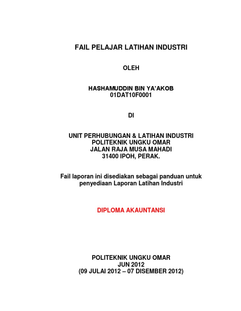 Politeknik Kuching Sarawak ditubuhkan pada tahun 1987. LAPORAN LATIHAN INDUSTRI OLEH NURDALILA BINTI MOHD DALIF DI PUTRAJAYA ENTERPRISE LOT 4157 BUKIT BERUANG MELAKA TENGAH MELAKA Buku laporan ini dikemukakan kepada Jabatan Perdagangan sebagai memenuhi sebahagian dari syarat penganugerahan Diploma Pengurusan Peruncitan POLITEKNIK. Kos definisi akuntansi kos pengertian kos dan klasifikasi kos berdasarkan beberapa basis.